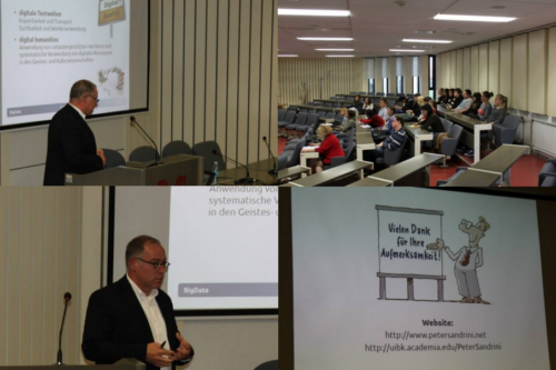 (2014) Big Data in der Translation - praktische and theoretische Anmerkungen. Vortrag am 15.05.2014, Maribor, invited by Vlasta Kučiš; pictures. (presentation 1Mb)